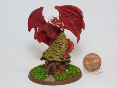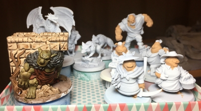 J5 – Brossage et détails des Loups; aplat pour le Dragon; effet “aqueux” pour l’Ogre; intégral pour le Pupitre et le Grand méchant Loup.