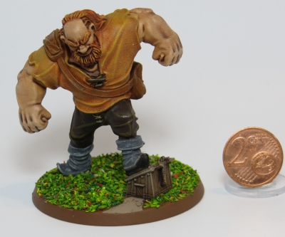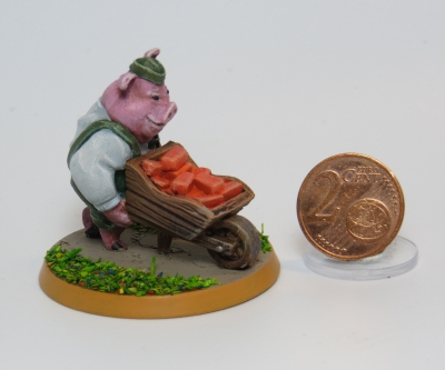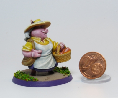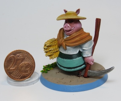 Sur une base de sous-couche blanche, le plus dur fut les cochons, la peau des cochons plus exactement. Autant la peau du géant est belle que celle des cochons est poudreuse, granuleuse. Un jour, je prendrai des cours pour peindre les peaux claires correctement.
