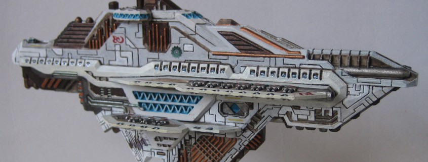 Mais retour en août 2012. Je dirais même retour en novembre 2011. Car c’est là que tout a commencé, avec l’achat d’une boîte de démarrage de la faction Relthoza. Puis quelques destroyers, deux Dreadnoughts, des corvettes, des escorteurs, d’autres croiseurs et pour finir des destroyers sont venus complétés la flotte, afin d’atteindre, si nécessaire, les 2000 points d’armée. J’avoue avoir craqué sur cette faction pour son design et absolument pas pour ces capacités au combat ou son armement. En pratique, il m’a fallu m’adapter aux caractéristiques de ma flotte, revoir mes tactiques et finalement aller souvent dans le tas.